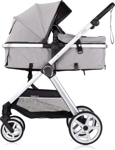 Der CHIPOLINO Vista Cloud Grey ist ein praktischer 2-in-1 Kinderwagen, der Babywanne und Sportsitz in einer Lösung vereint. Dank der cleveren Konstruktion verwandeln Sie die Sitzeinheit mühelos in eine Wanne für Neugeborene und wieder zurück, mit der Möglichkeit der Montage in oder gegen die Fahrtrichtung. Der leichte Aluminiumrahmen mit eloxiertem Effekt und die Federung aller Räder gewährleisten eine komfortable und stabile Fahrt in der Stadt wie im Park.