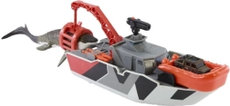 Zum Set gehört ein großer Mosasaurus mit beweglichem Kiefer, der zu dramatischen Fang-Szenen einlädt. Abschussbare Harpunen und die funktionierende Winde bringen Spannung in jede Mission – sichere DNA-Proben und transportiere sie sicher an Bord. Das abnehmbare Rettungsboot und der beiliegende Jeep im Maßstab 1:64 erweitern die Spielmöglichkeiten und fördern kreatives Storytelling.