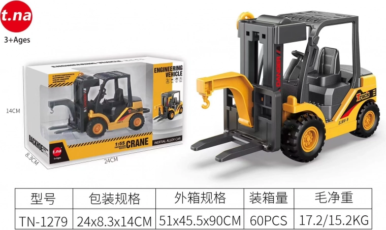 Die Handhabung der Ladung ist vollständig manuell – mithilfe der Mulde/Ladefläche lässt sich die Ladung heben und senken, die Gabeln sind kippbar und die beweglichen „Steuer“/Räder erleichtern das Lenken. Im Set finden Sie auch eine Palette, auf die die Ladung aufgeladen und transportiert werden kann – für ein besonders realistisches Spielerlebnis.