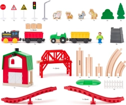 Die Holzeisenbahn „Leben auf dem Bauernhof“ bringt Kindern eine authentische Bauernhofwelt mit Zug, Schienen und thematischen Zubehörteilen näher. Kinder können eigene Geschichten erschaffen, die Hand-Auge-Koordination entwickeln und grundlegende Prinzipien von Ursache–Wirkung beim Bewegen des Zuges auf den Schienen erlernen.
