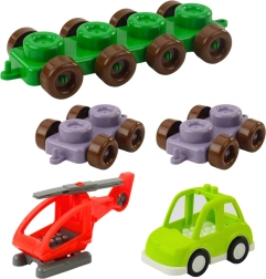 Jedes Teil ist mit einem Buchstaben oder einer Ziffer versehen und unterstützt so die Entwicklung des logischen Denkens, des Gedächtnisses und der feinmotorischen Fähigkeiten. Kinder können einfache Bauwerke errichten, erste Wörter legen und zählen. Figuren, Fahrzeuge und Konstruktionselemente erweitern die Spielmöglichkeiten.