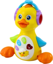 Dieses farbenfrohe interaktive Entchen wurde entwickelt, um Kinder schon ab 18 Monaten zu begeistern. Über Tasten starten Sie fröhliche Melodien, Lieder und Geräusche, während die Lichter an den Kopfhörern und am Herzchen im Takt blinken. Das Entchen kann sich nach vorne bewegen und dabei fröhlich zur Seite wippen, was das Spiel dynamisch und fesselnd macht.