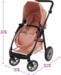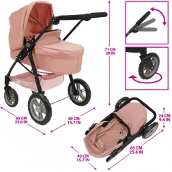 Stilvoller 2-in-1-Puppenwagen in Rosa mit hochwertiger Verarbeitung, abnehmbarem Sitz und der Möglichkeit, ihn in einen Sportwagen zu verwandeln. Dank verstellbarem Schieber, schwenkbarem Vorderrad und großem Korb ideal für kleine Mamas. Geeignet für Puppen bis ca. 53 cm.