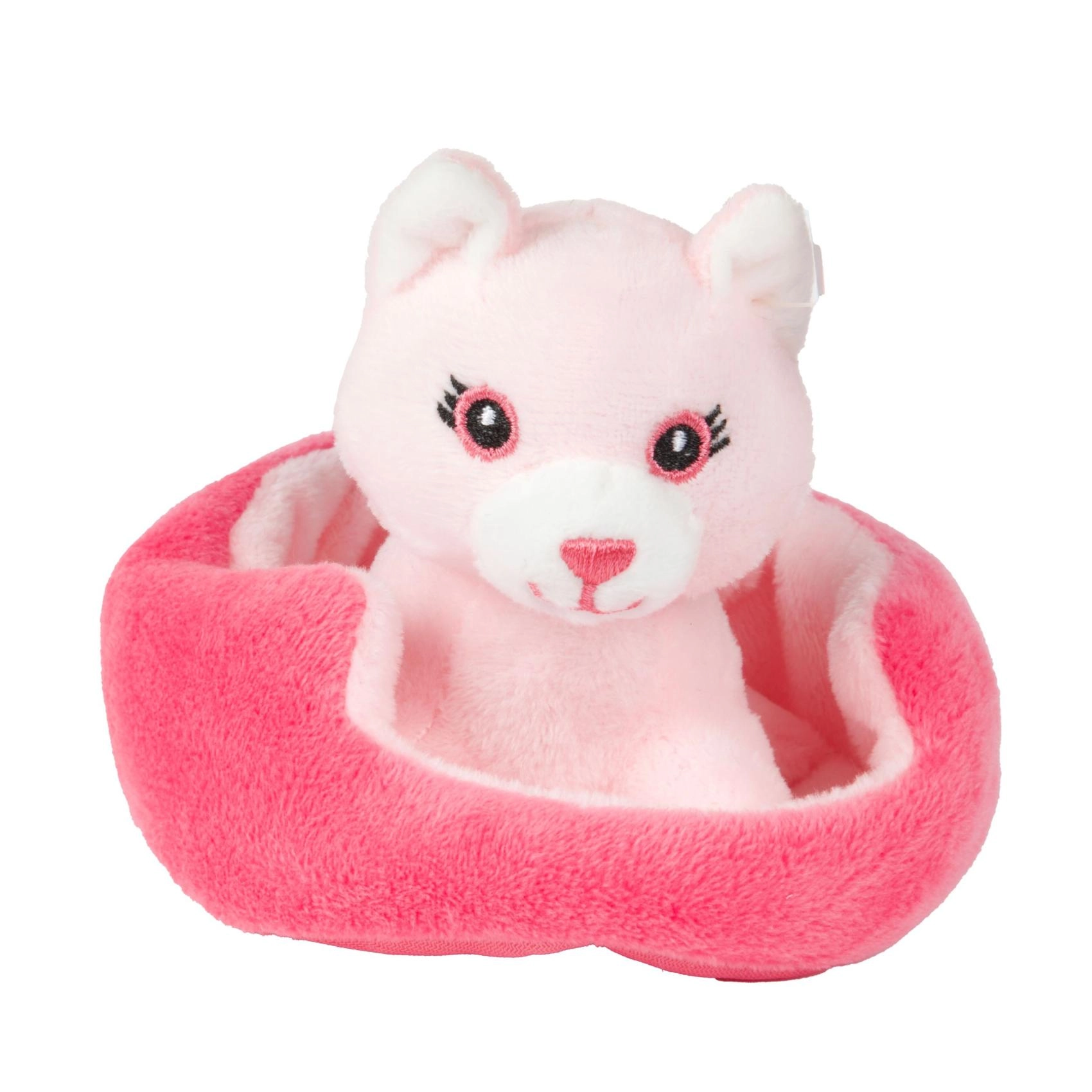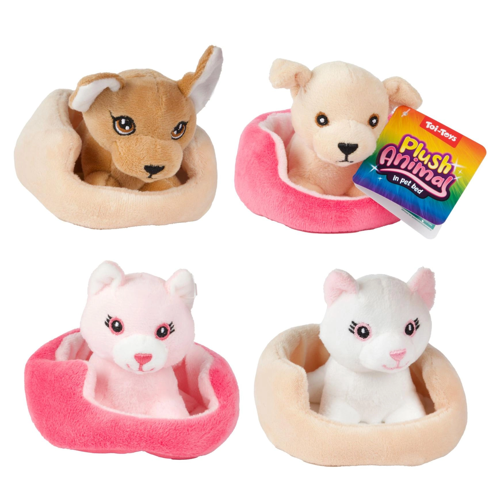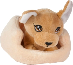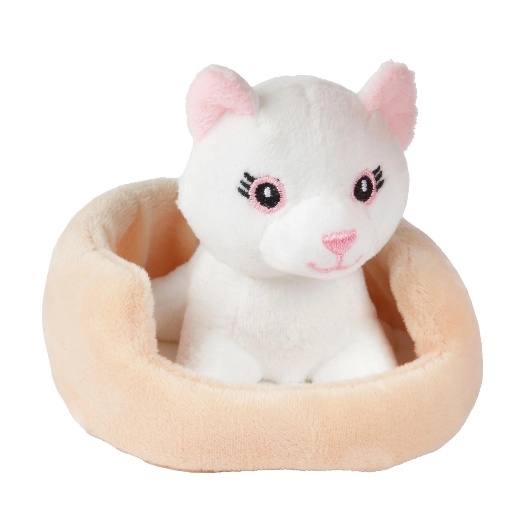Diese niedliche Plüschkatze oder dieses Hündchen im gemütlichen Bettchen ist der perfekte Begleiter für tägliches Spielen und Einschlafen. Dank des weichen Plüschs und der kompakten Größe liegt es auch den kleinsten Händchen gut und fördert Fantasie und Fürsorge-Rollenspiele.