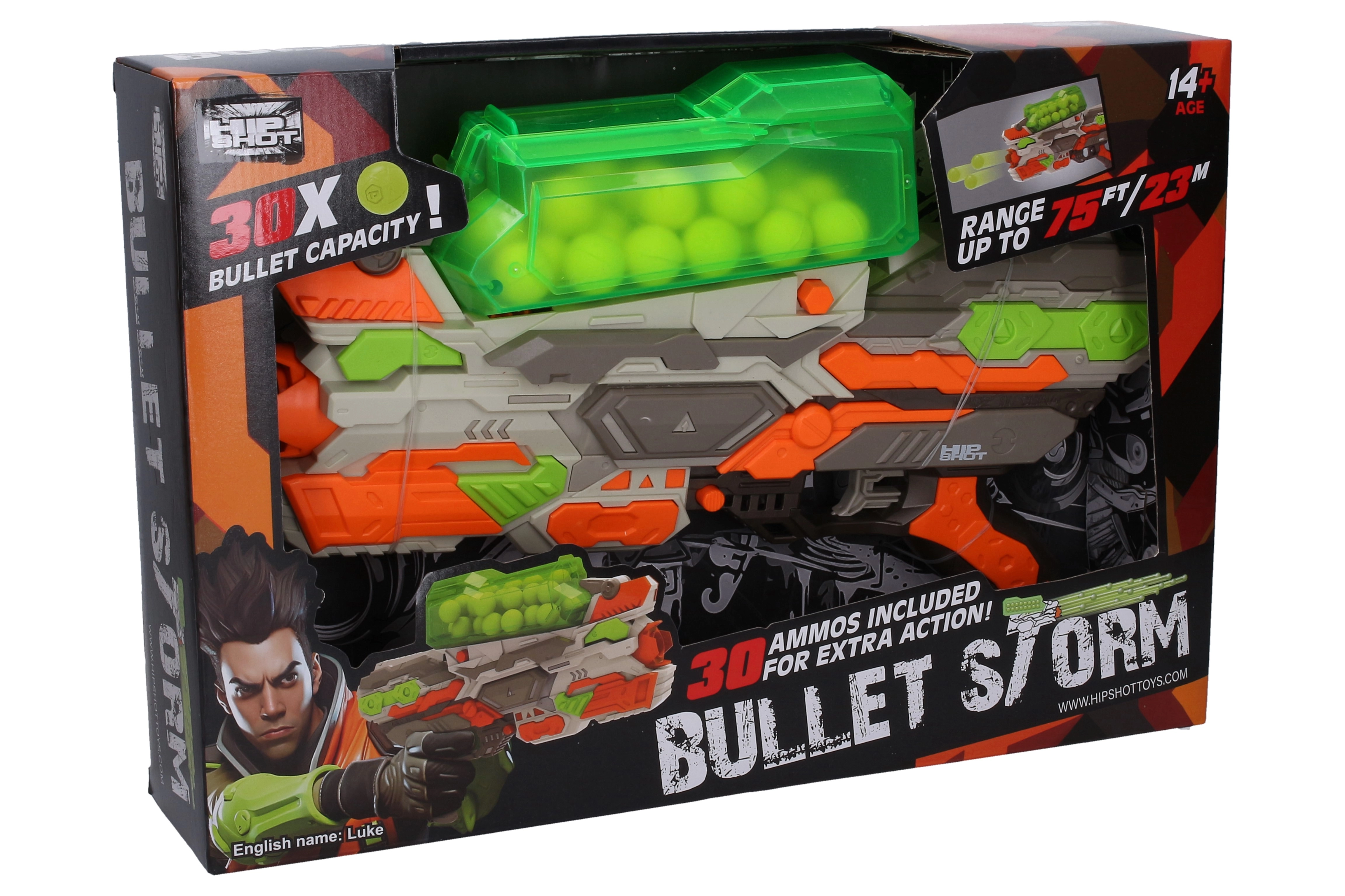 Bereiten Sie sich auf actionreichen Spaß mit der Bullet Storm vor, die Sicherheit und Leistung kombiniert. Dank der Reichweite von bis zu 23 Metern und dem Vorrat von 30 weichen Schaumstoffkugeln genießen Sie stundenlangen Spielspaß drinnen und draußen. Die robuste Verarbeitung und der komfortable Griff sorgen für eine bequeme und sichere Handhabung.