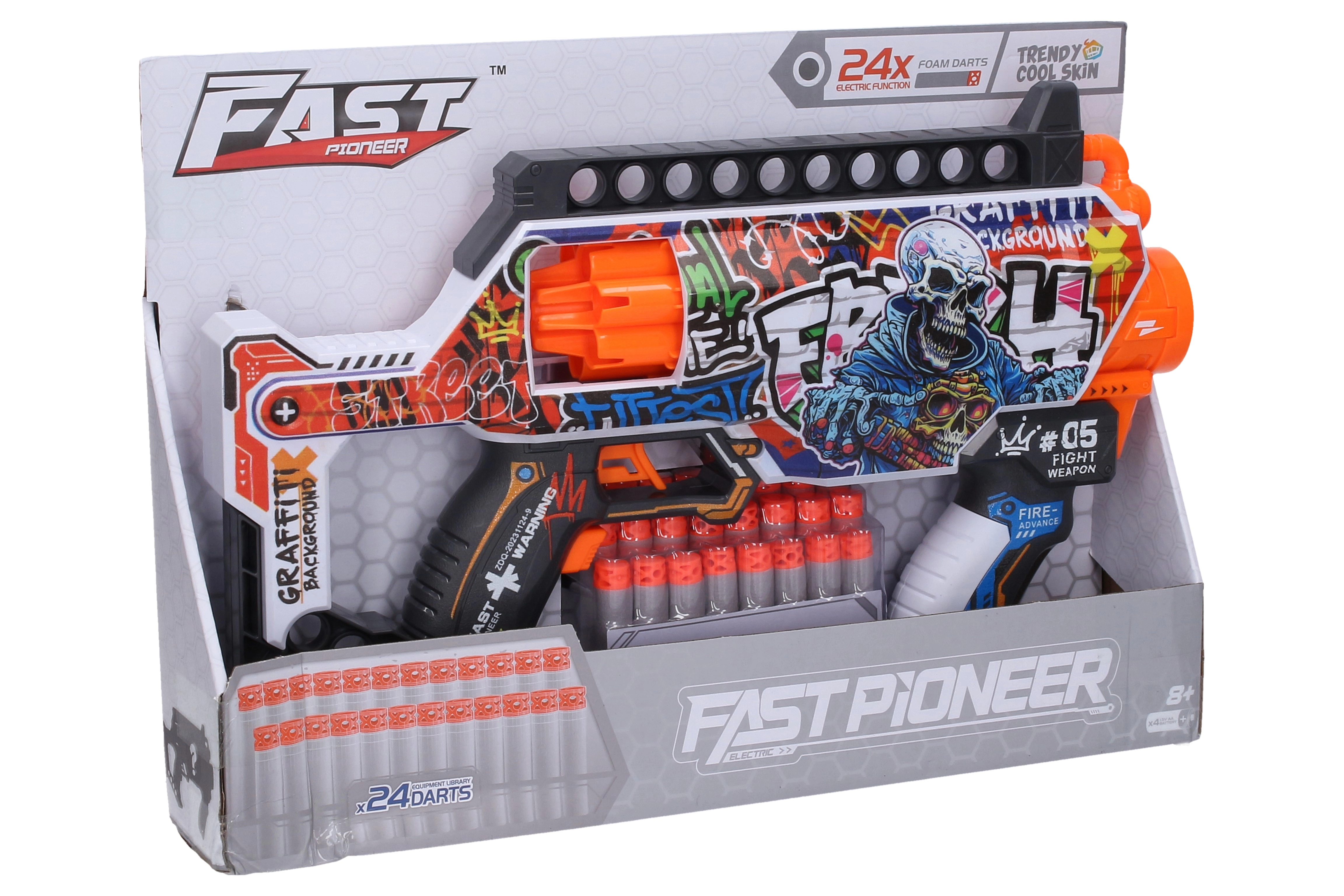Im Lieferumfang sind 24 Schaumgeschosse enthalten, sodass Sie sofort loslegen und längere Spielsessions ohne häufiges Nachladen genießen können. Ideal für Kinderduelle, Zielübungen und Teamspiele im Garten.