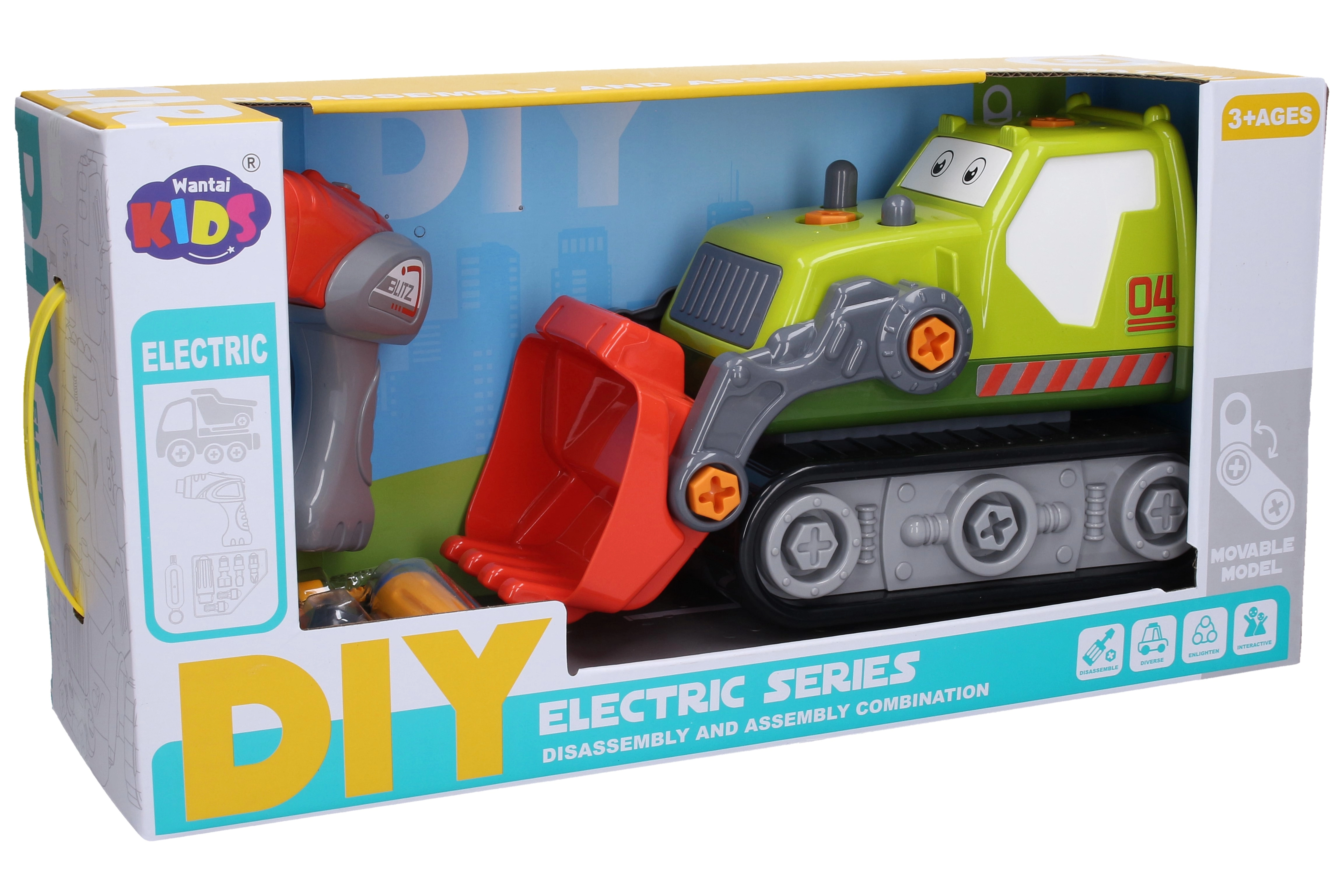 Dieser schraubbare Bulldozer ist ideal für wissbegierige Kinder, die Maschinen und kreatives Bauen lieben. Mit dem elektrischen Schraubendreher und den beiliegenden Werkzeugen können sie einzelne Teile selbst zerlegen und wieder zusammenbauen und dabei Feinmotorik, Geduld und technisches Denken fördern. Die elektrische Einheit des Schraubendrehers kann außerdem herausgenommen und in den Bulldozer eingesetzt werden – für ein noch authentischeres Spielerlebnis.