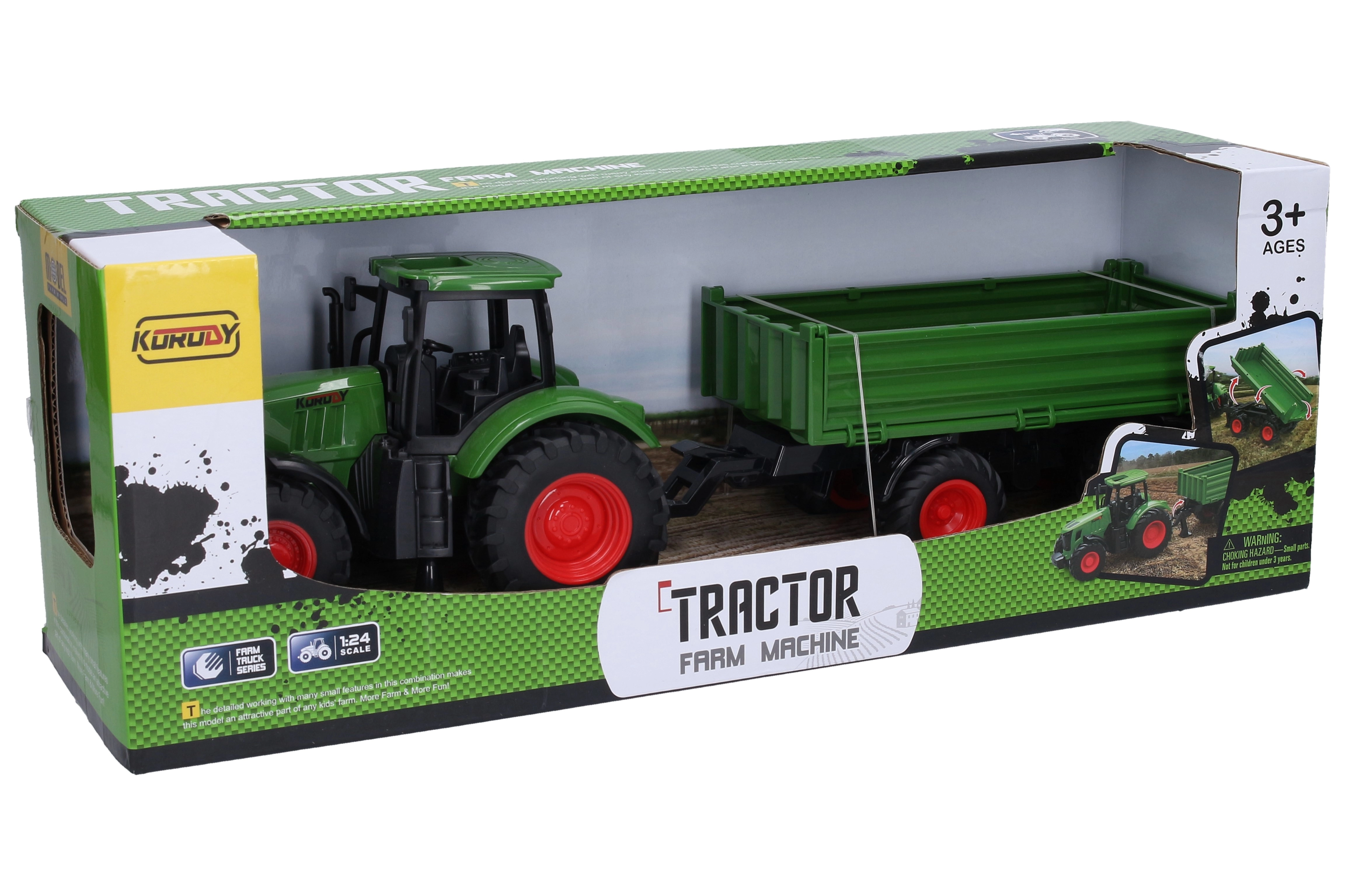 Entdecken Sie den Bauernhofspaß mit diesem detailreich gestalteten Traktor mit Anhänger. Dank der Freilaufräder lässt sich das Fahrzeug leicht steuern und ist ideal für Kinderhände. Klappbare Anhängertüren ermöglichen realistisches Be- und Entladen, fördern die kreative Spielweise und die Motorik.