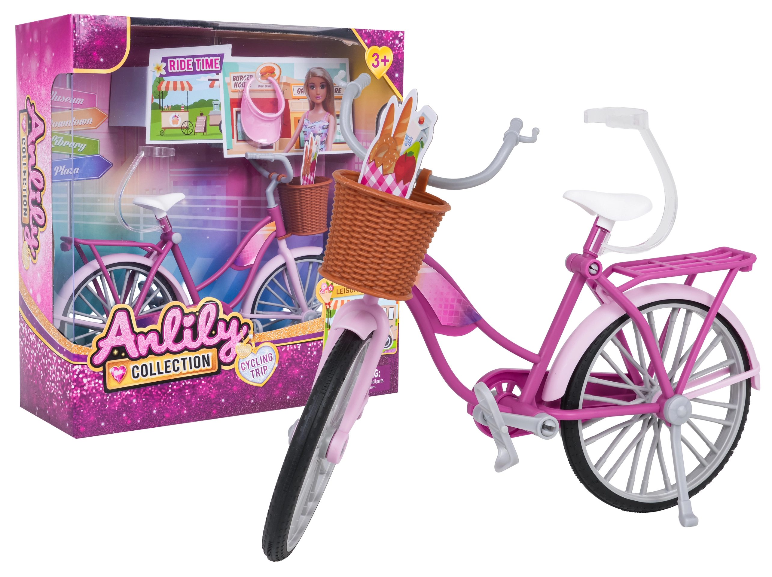 Erschaffen Sie Fantasiewelten mit dem eleganten rosa Puppenfahrrad. Dank realistischer Details wie beweglichen Rädern, Pedalen und Lenker können Kinder in kreatives Spiel eintauchen und ihre Feinmotorik trainieren. Der vordere korb im Flechtlook fasst alle kleinen Reiseutensilien, während der Ständer das Fahrrad sicher an Ort und Stelle hält.