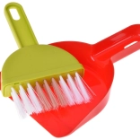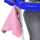 Wischmopp, Besen, Handfeger und Kehrschaufel, Eimer mit Presse, Tuch, Sprühflasche, Warnschild und Schachteln – alles, was Kinder zur Nachahmung von Hausarbeiten brauchen.