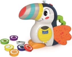 Entdecken Sie erstes Lernen durch Spiel mit einem niedlichen Freund – dem interaktiven Tukan Adrian von CLEMENTONI. Das Kind steckt thematische Jetons mit Symbolen für Obst und Farben ein, und der Schnabel des Tukans reagiert mit Licht in entsprechenden Farbtönen. So werden visuelle Wahrnehmung, logisches Denken und Wortschatz gefördert.