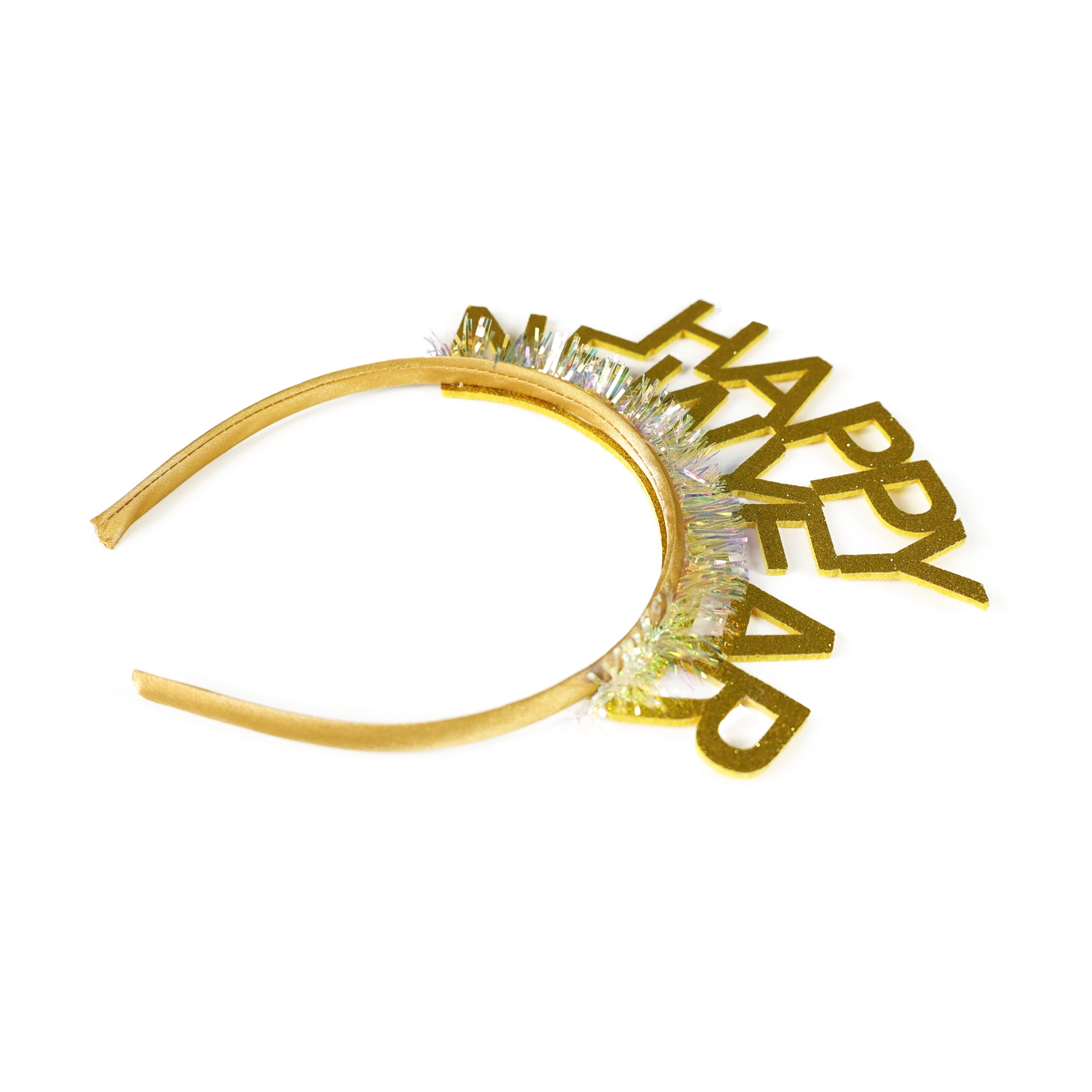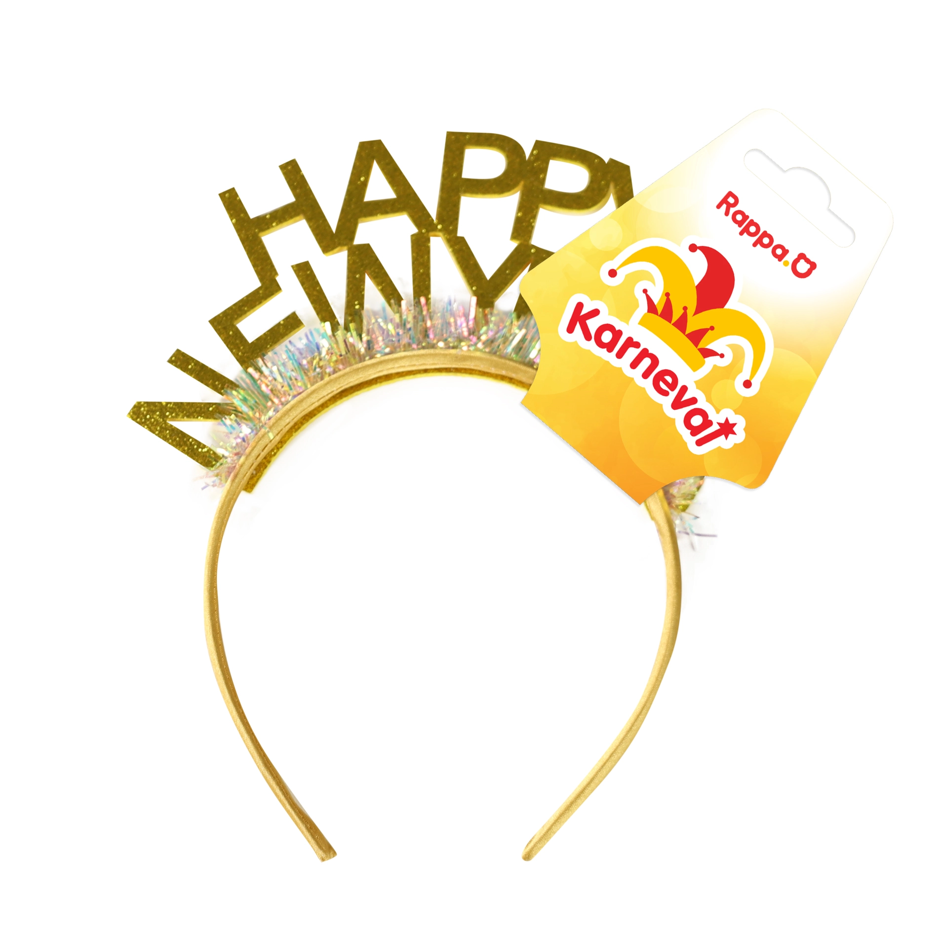 Sorge in deiner Silvesternacht für einen strahlenden Effekt. Der goldene Haarreif mit prominentem glitzerndem Schriftzug HAPPY NEW YEAR ist leicht, bequem und sitzt sicher im Haar. Er schafft sofort festliche Stimmung und wirkt großartig auf Fotos.