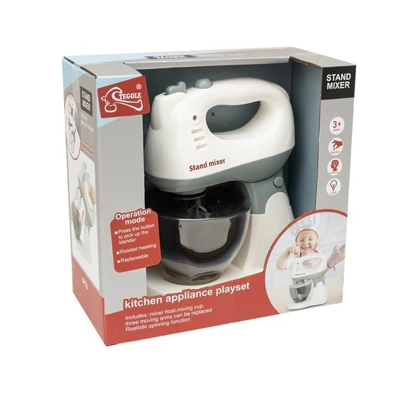 Der Kinder-Mixer ist ein tolles Zubehör für spielerischen Küchenspaß. Dank zwei Steuerungsmodi, Lichtanzeige und realistischer Bewegung der Rührbesen können Kinder Rühren und Schlagen wie in einer echten Küche ausprobieren. Wechselbare Aufsätze und die beiliegende Schüssel fördern die Fantasie und schulen logisches Denken.