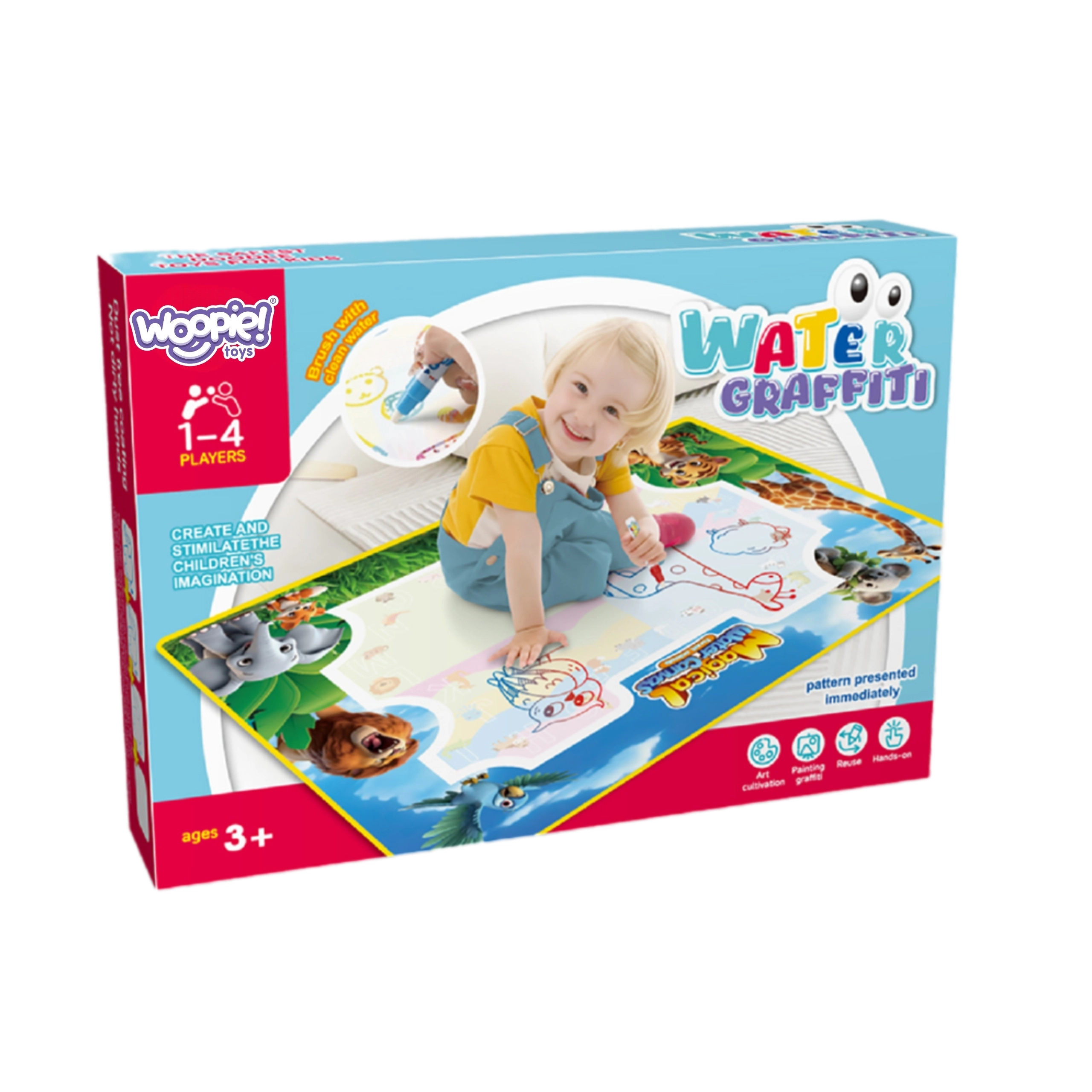 Die Wasserunterlage von Woopie ist ein cleveres Lernspielzeug, das die Feinmotorik, logisches Denken und Konzentration fördert – ganz ohne Tinte, Chemie und Flecken. Das fröhliche Safari-Design motiviert zum Lernen durch Spiel, während die schnell trocknende Oberfläche endloses Wiederholen ermöglicht.