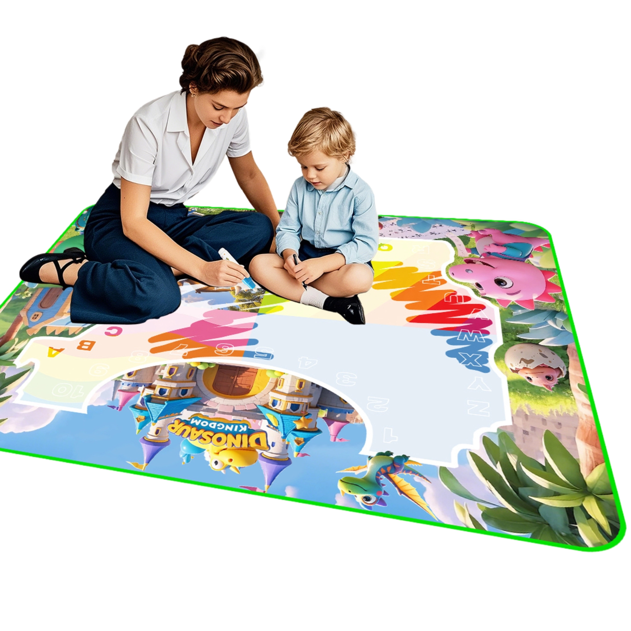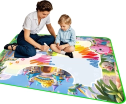 Entdecken Sie spielerisches Malen ohne Flecken auf Kleidung und Möbeln. Diese große Wasser-Malmatte mit Dinosauriermotiv fördert Kreativität, Vorstellungskraft und Feinmotorik. Es wird ausschließlich mit Wasser gemalt – keine Farben oder Filzstifte, die die Umgebung verschmutzen. Nach kurzer Zeit verschwinden die Zeichnungen von selbst, sodass die Matte mehrfach verwendet werden kann.