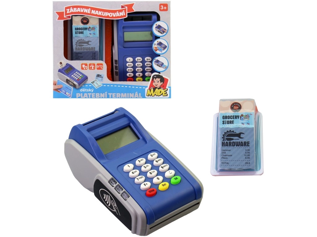 Realistisches Kinder‑Zahlungsterminal für kleine Verkäuferinnen und Verkäufer bietet sicheres und spielerisches Lernen über Zahlungsvorgänge. Die kompakten Abmessungen ermöglichen leichtes Mitnehmen, die leichte Kunststoffkonstruktion ist robust und dank kontaktlosem „Piep“ sowie Zahlentastatur wirkt das Spiel maximal authentisch. Die Stromversorgung erfolgt über 3× AAA‑Batterien (nicht enthalten).