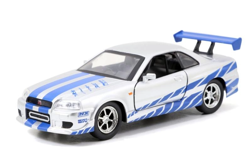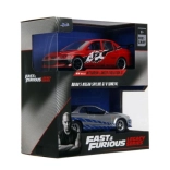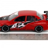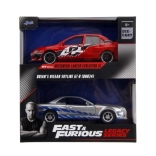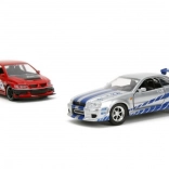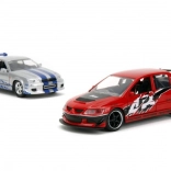 Dieses Premium‑Doppelpack bringt ikonische Filmfahrzeuge in erstklassiger Ausführung: ein roter Lancer Evo IX mit Renn‑Grafiken und markantem Flügel sowie ein silberner Skyline GT‑R R34 mit blauen Streifen. Metallkarosserie, realistische Details und funktionsfähige Türen steigern den Sammel‑ und Spielwert.