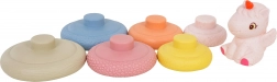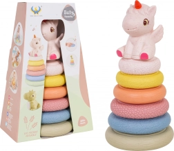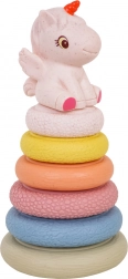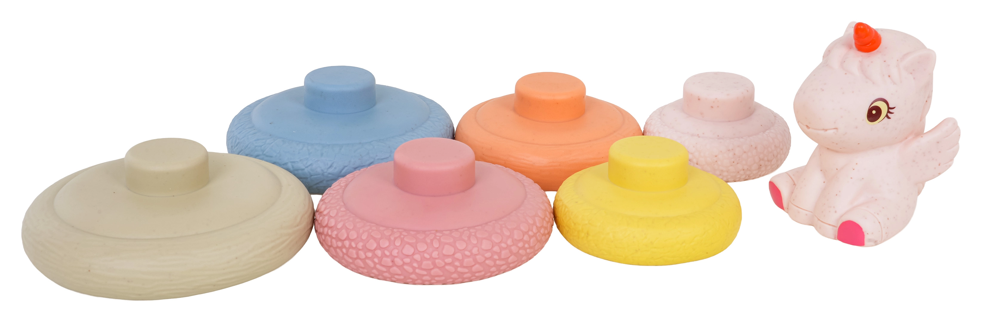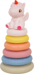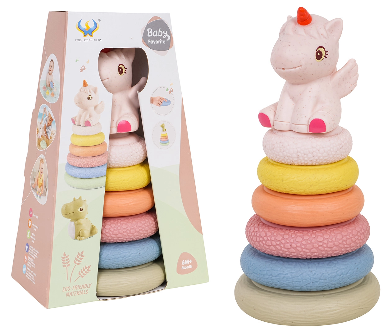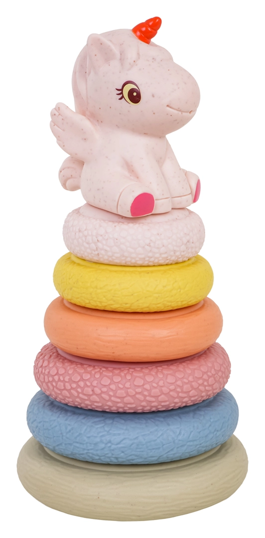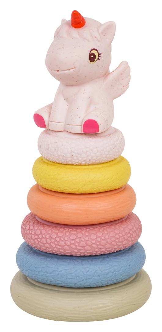 Diese Eco-Sensorik-Pyramide ist das ideale erste Spielzeug für kleine Entdecker. Sechs leicht greifbare Ringe mit unterschiedlichen Oberflächen lehren das Kind, Formen und Texturen zu unterscheiden, fördern die Farbwahrnehmung und führen spielerisch zum Training von Greifen und Stapeln nach Größe. Das niedliche Einhorn an der Spitze quietscht beim Drücken, steigert so die Aufmerksamkeit und motiviert zum weiteren Erkunden.