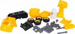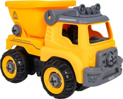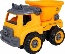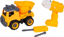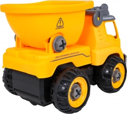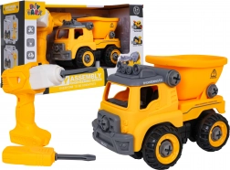 Unterhaltsamer, zerlegbarer Baustellen-Lkw (Tatra-Stil) für Kinder ab 3 Jahren mit Akkubohrer und Handschraubendreher. Kinder können das Fahrzeug leicht auseinander- und wieder zusammenbauen und trainieren so feinmotorische Fähigkeiten, logisches Denken und Kreativität. Nach dem Einsetzen des Steuerpanels bewegt sich das Auto von selbst vorwärts und rückwärts; kippbare Mulde und öffnendes Dach fehlen nicht.