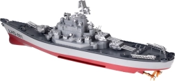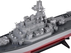 Detailiertes Deck, Aufbauten, Radare und Geschütze verleihen dem Modell ein eindrucksvolles Erscheinungsbild. Ein stabiler Ständer ist enthalten, auf dem das Schiff nach jeder Fahrt hervorragend zur Geltung kommt.