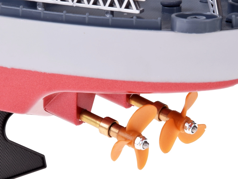 Der leistungsstarke Antrieb ermöglicht Geschwindigkeiten bis 10 km/h, die geschätzte Fahrzeit pro Akkuladung beträgt etwa 30 Minuten, und die effektive Steuerreichweite liegt bei rund 100 Metern. Das Schiff beherrscht sanfte kombinierte Kurvenfahrten (z. B. vorwärts + links für einen Bogen) und bietet Trimmung zur Feinkorrektur des Geradeauslaufs.