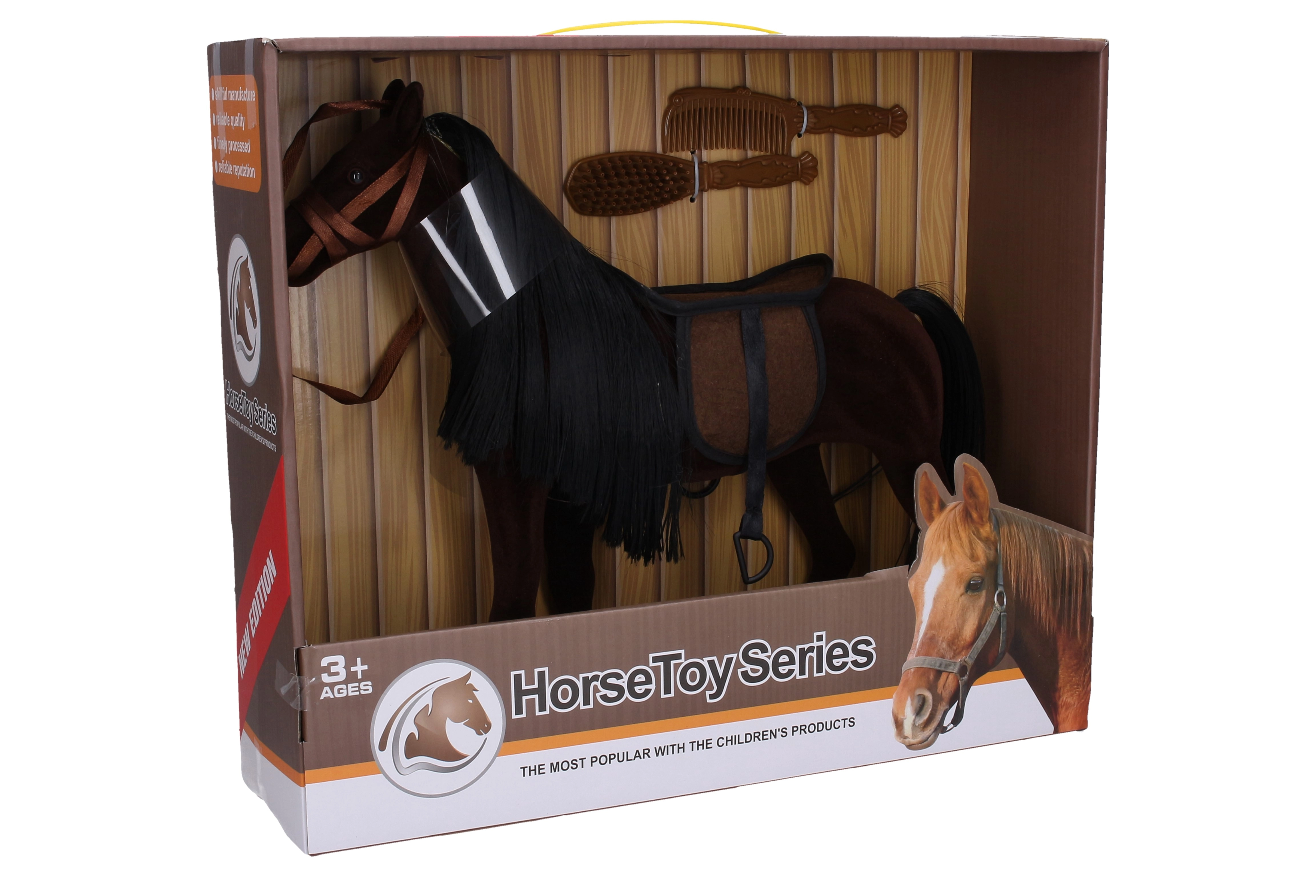 Dieses dunkle Plüschpferd mit einer Größe von 35 cm ist ein großartiger Begleiter für Kinder, die Tiere und deren Pflege lieben. Dank des beiliegenden Sattels und der zwei Kämme können Kinder das Pferdchen stylen, kämmen und eigene Geschichten erfinden. Die weiche Ausführung ist angenehm anzufassen und eignet sich für den täglichen Spielspaß.