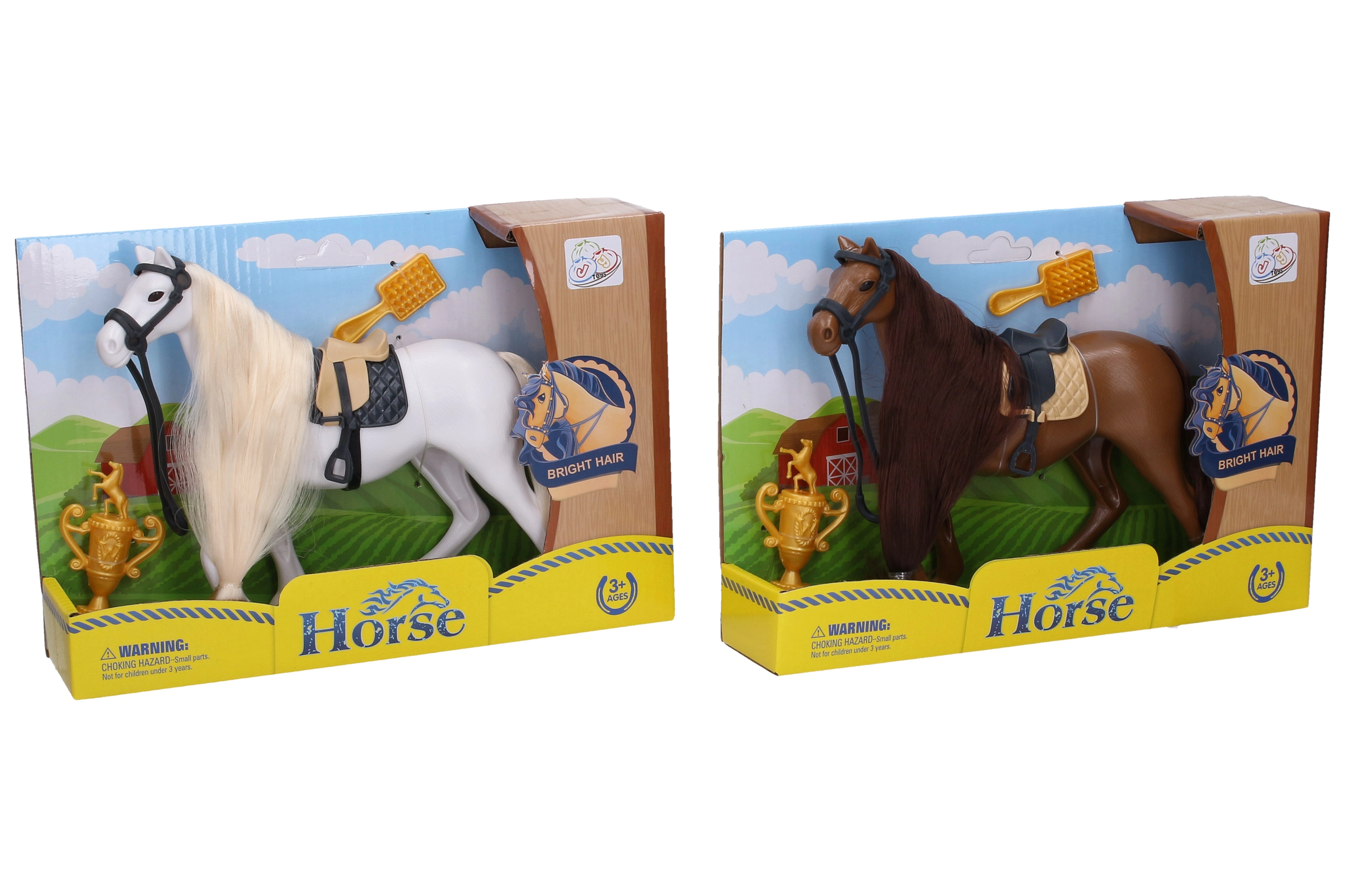 Entdecken Sie die Faszination der Reitwelt mit diesem detailreich gestalteten 19-cm-Pferd. Dank Sattel und Zaumzeug ist es bereit für Ausritte, während die Trophäe den Wettkampfgeist fördert und die Bürste Kindern beibringt, sich um ihren tierischen Freund zu kümmern.