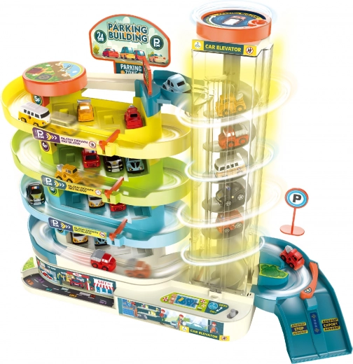 Dieses Etagenparkhaus bietet Kindern stundenlangen kreativen Spielspaß. Der funktionale Aufzug kann mit Batterien oder manuell (Schalter) betrieben werden, sodass Kinder die Spielweise frei wählen können. Licht- und Soundeffekte sorgen beim Parken und Bewegen der Autos für noch mehr Authentizität.