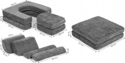 Klappbares modulares Kindersofa für 2 Kinder aus 10 Teilen aus weichem Polsterstoff – grau ECOTOYS
