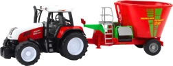 Der rote Traktor mit Anhänger und großem Futtermischer bildet eine echte Landmaschine detailgetreu nach. Dank des Anschieb-Antriebs fährt das Fahrzeug von selbst los, und der angekoppelte Anhänger mit Mischer sorgt für noch mehr Realismus – Kinder können das Füttern der Tiere und den Alltag auf dem Bauernhof nachspielen.