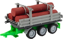 Traktor, Anhänger und Stämme bilden ein komplettes Set. Einfaches Ankuppeln dank Zugöse und leichtlaufenden Rädern.