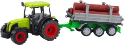 Dieser detailgetreue Traktor mit Anhänger erinnert an echte Forsttechnik. Dank Schwungradantrieb fährt er nach einem Schubs zügiger an; der Anhänger ist für den Transport von Holzstämmen ausgelegt und das Set unterstützt das Spielthema Bauernhof und Wald optimal.