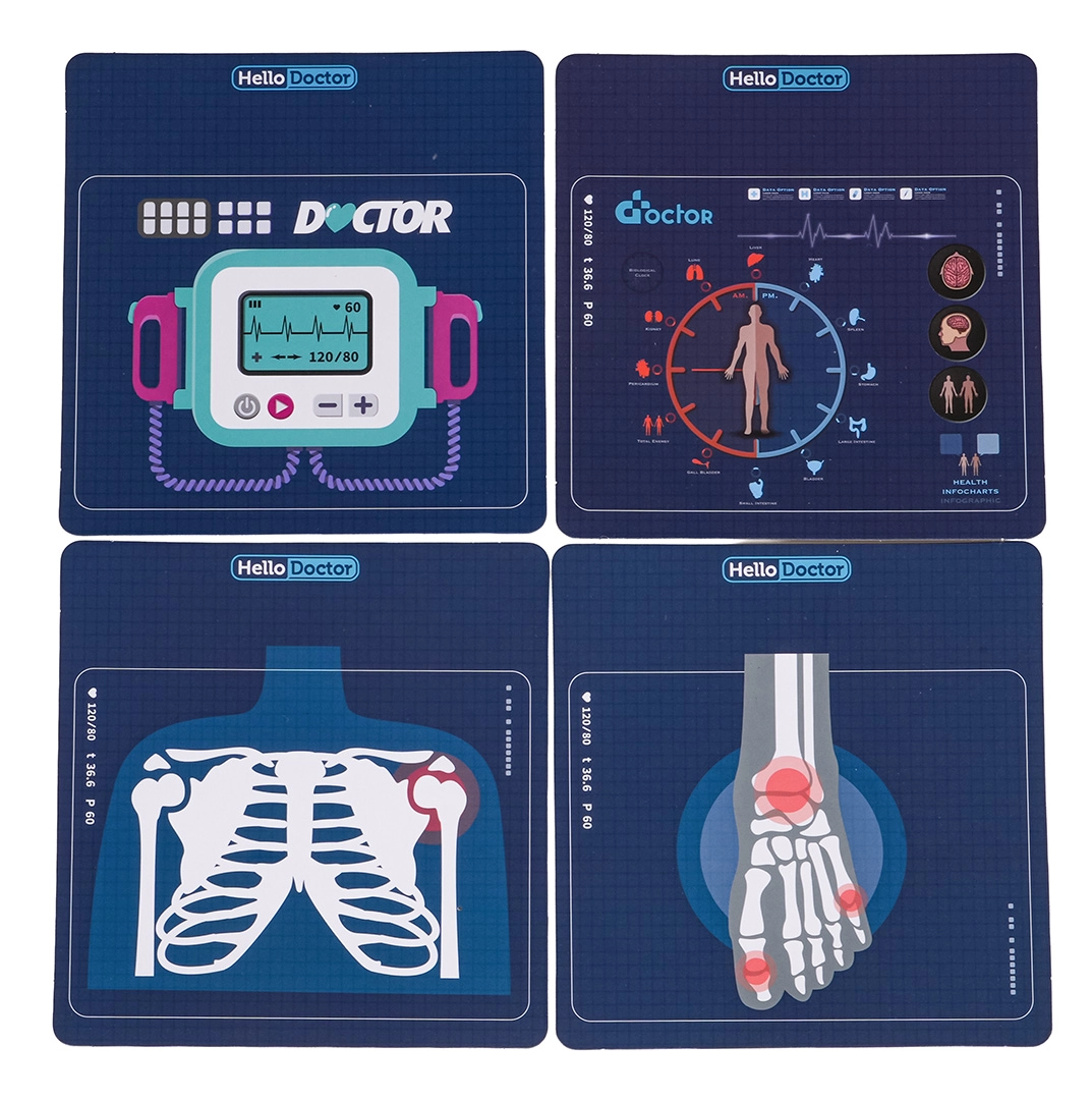 Herzschlag, Temperaturmessung, Tomografie-Geräusch und Alarm. Ein beleuchtetes Herzsymbol auf dem Display und austauschbare EKG-/Tomografie-Aufnahmen sorgen für noch realistischeres Spiel.