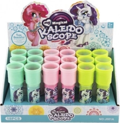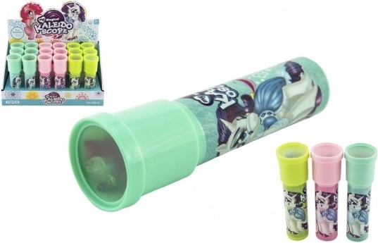 Das Kaleidoskop ist ein zeitloses Spielzeug, das beim Blick ins Licht mithilfe eines Systems aus Spiegeln und farbigen Teilchen einzigartige und sich ständig verändernde Muster erzeugt. Das Einhornmotiv erfreut alle kleinen Träumerinnen und Träumer sowie Liebhaber magischer Welten.