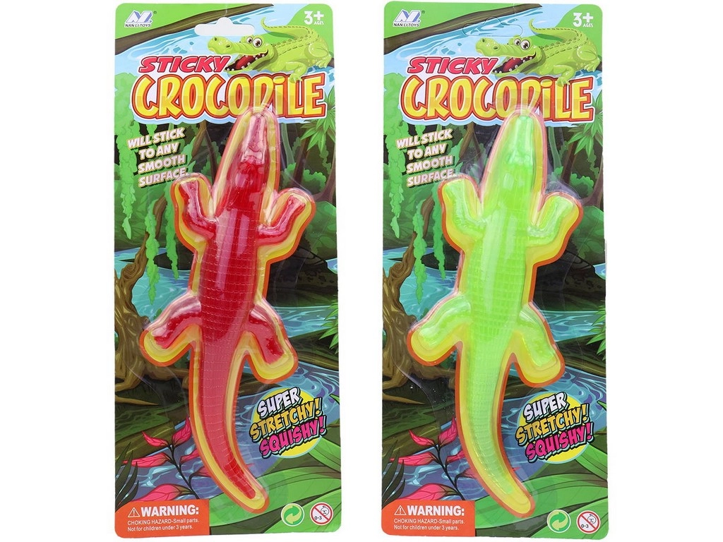 Entdecken Sie den Spaß mit dem klebrigen Krokodil in den Maßen 20 × 6,5 cm. Dank der haftenden Oberfläche bleibt das Spielzeug leicht auf glatten Flächen haften und bietet Kindern viel Unterhaltung und Lachen. Es ist leicht, liegt angenehm in der Hand und eignet sich ideal zum einfachen Werfen und Fangen.