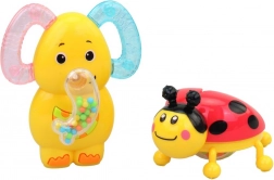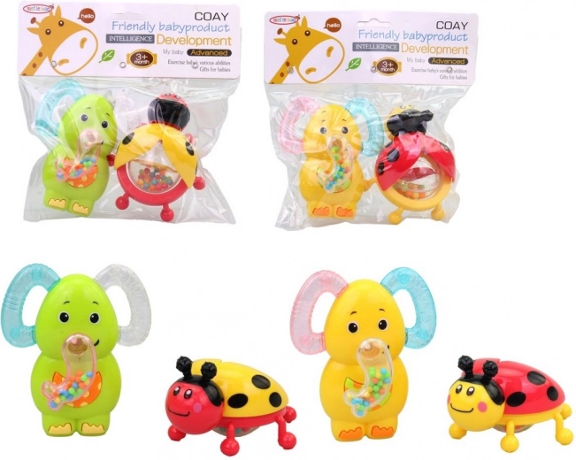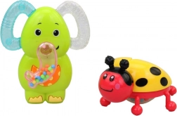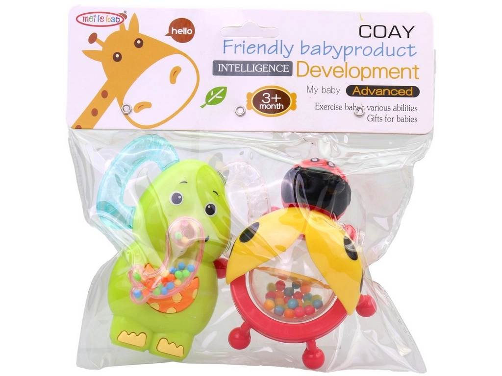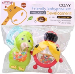 Dieses Duo aus Rasseln ist für die kleinsten Entdecker ab 3 Monaten konzipiert. Leichter Kunststoff und ergonomische Form ermöglichen ein einfaches Greifen, während der sanfte Klang das Gehör und die natürliche Neugier des Kindes anregt. Die kompakten Maße von 12 × 9 cm sind ideal für zu Hause und unterwegs.