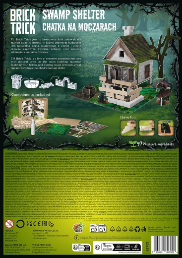 Bauset TREFL BRICK TRICK Hütte im Sumpf mit 190 Teilen aus echten Ziegeln und Holz. Wiederverwendbar, fördert Geschicklichkeit und Kreativität. Großer Bauspaß.