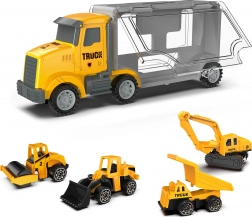 Im Paket finden Sie einen Lastwagen und vier verschiedene Baufahrzeuge, mit denen Kinder alle Aufgaben von Transport bis Erdarbeiten meistern. Das Set ist großartig zur Förderung der Motorik, Fantasie und auch für Teamspiele.