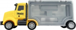 Entdecken Sie das komplette Set für die kleine Baustelle. Der robuste Laster mit praktischer Box verstaut und transportiert alle beiliegenden Maschinen. Dank der Freilaufräder bewegen sich die Fahrzeuge leicht auf unterschiedlichen Untergründen und fördern kreatives Spiel.