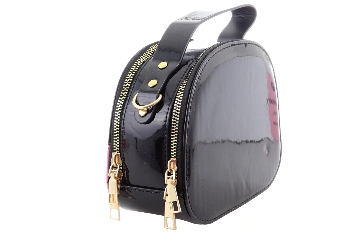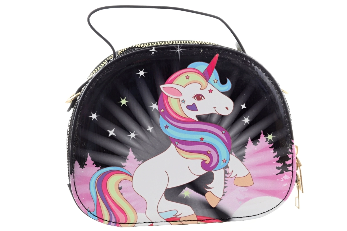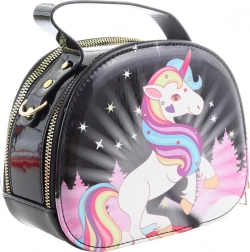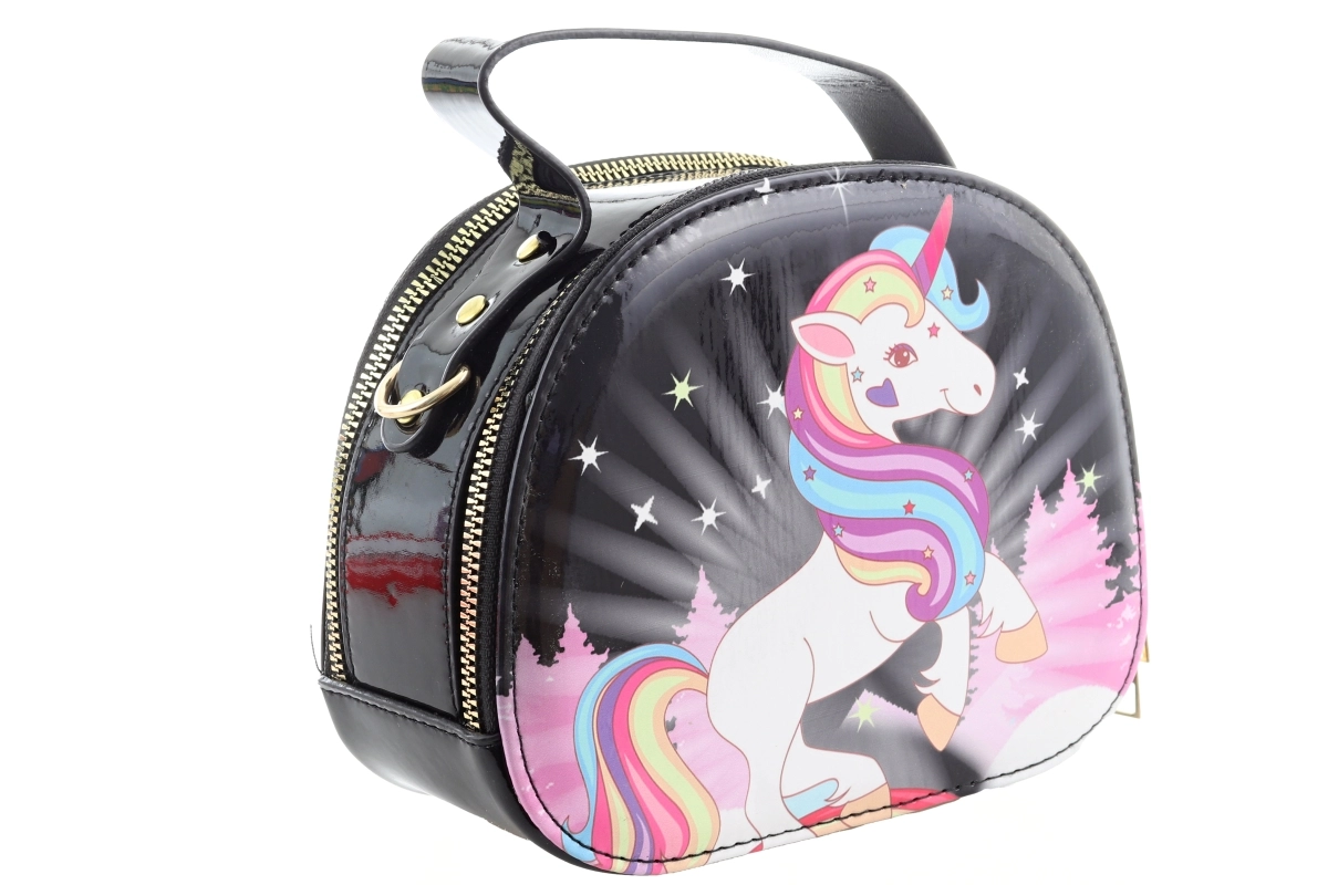 glänzende Kindertasche mit Einhorn, Reißverschluss, schwarz