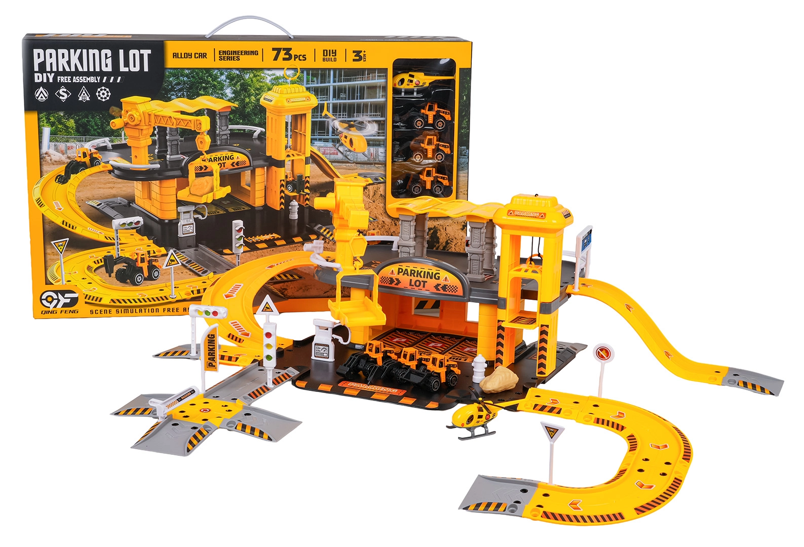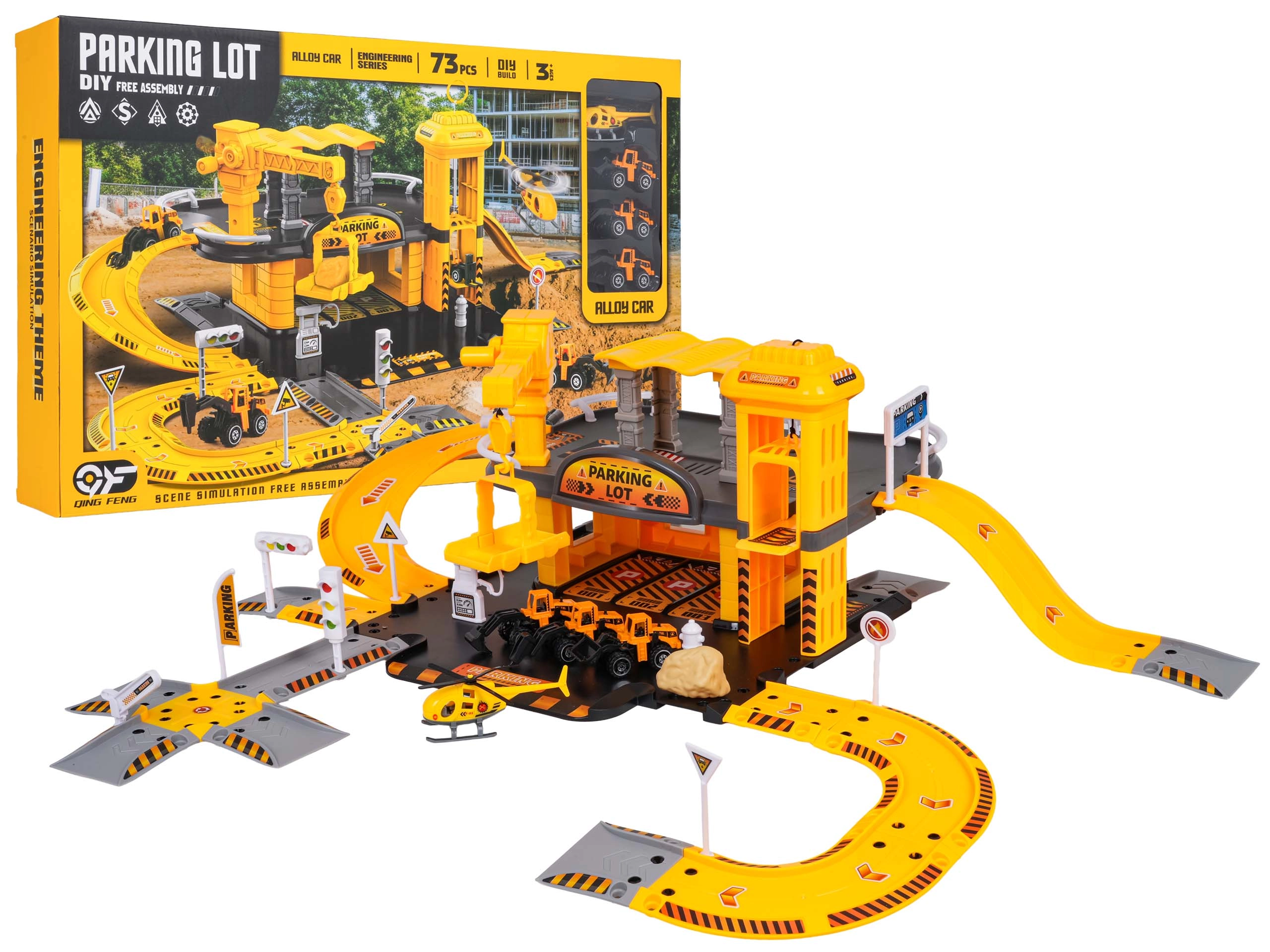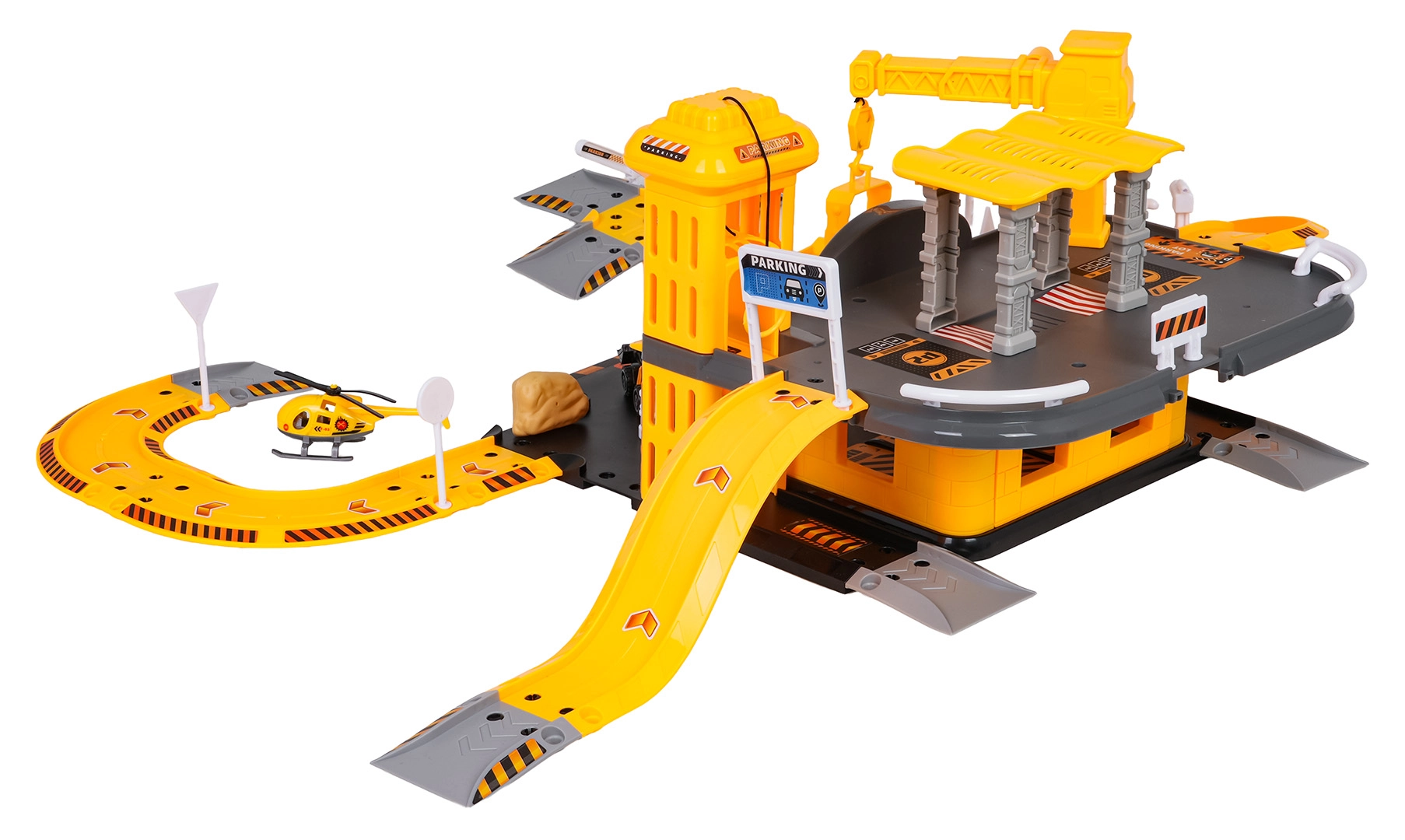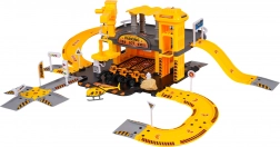 Dieses detailreich gestaltete Bauparkhaus begeistert kleine Fans von Baumaschinen. Im unteren Geschoss gibt es eine Tankstelle und Straßen; der manuelle Aufzug bringt die Fahrzeuge ins erste Obergeschoss, wo sich der Baustellenbereich mit funktionalem Kran befindet. Die kompakte Anlage bietet viele Spielmöglichkeiten und flüssige Fahrten über die gewundenen Rampen.