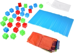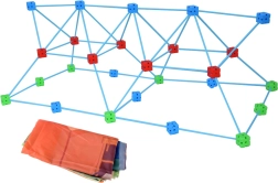 Bunte Würfel mit mehrdirektionalen Öffnungen ermöglichen das Verbinden der Stäbe in verschiedenen Winkeln. So entstehen im Nu Türme, Kuppeln und großzügige Spiel-Forts.