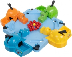 Entfacht einen spannenden Wettkampf um die Kugeln! Jeder Spieler steuert sein Nilpferd über einen großen Hebel – einfach drücken und das Nilpferd öffnet sein Maul und „schluckt“ die Kugeln. Die Regeln sind sofort verständlich, sodass sowohl jüngere als auch ältere Kinder und Erwachsene Spaß haben.