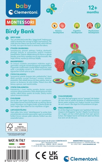 Die niedliche Spardose in Form eines Vögelchens der Marke Clementoni hilft Kindern spielerisch, ihre finanzielle Bildung zu entwickeln. Sie verfügt über eine praktische Öffnung zum Einwerfen von Münzen, ein leichtes Entleeren der Ersparnisse und besteht aus hochwertigen und sicheren Materialien. Ideal als originelles Geschenk und als Dekoration fürs Kinderzimmer.