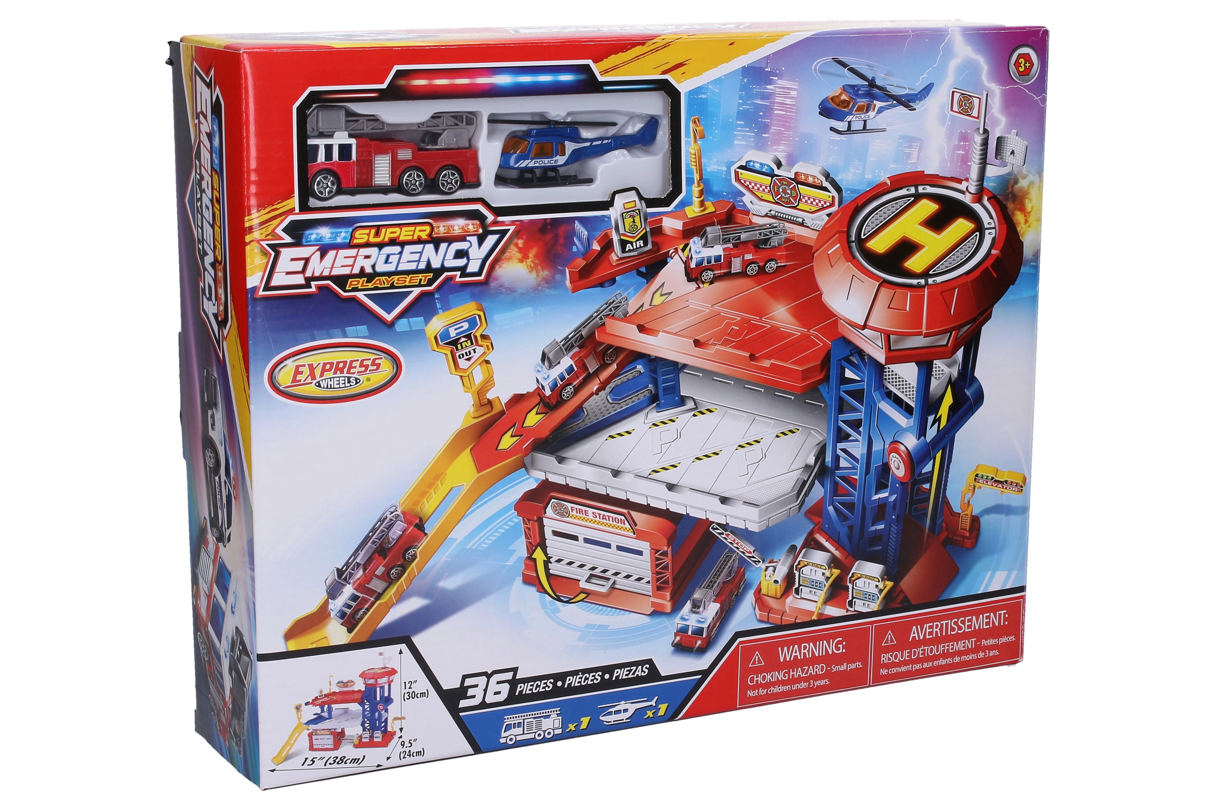 Baue deine eigene Feuerwache und ab in den Einsatz! Diese detailreiche Station mit Garage hat 2 Etagen, einen funktionierenden Aufzug und Auffahrten für schnelle Abfahrten. Dank der klappbaren Tore ist das Einsatzfahrzeug sofort startklar, während der Hubschrauber vom Dach aus startet.