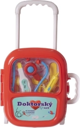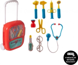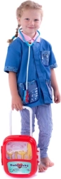 Ärztliches Kinderset mit Stethoskop im rollenden Koffer