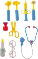• Komplette Ausstattung für kleine Ärzte – Stethoskop, Spritze, Schere, Hammer und weiteres Zubehör.