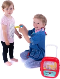 Entdecken Sie das unterhaltsame Arztset für Kinder im praktischen Trolley-Koffer, das alles für das Doktorspiel enthält. Das funktionale Stethoskop mit Herzschlaggeräusch mit Batterien fördert realistisches Spiel, Fantasie und soziale Fähigkeiten. 3x AG10 Batterien sind im Lieferumfang enthalten.