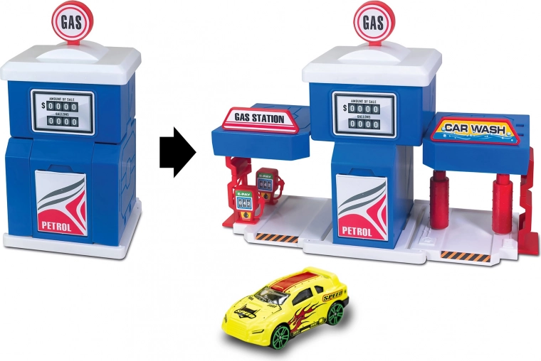 Entdecken Sie die Welt der Straßen mit der ausklappbaren Tankstelle mit einer Länge von 15 cm. Dank der kompakten Maße passt sie in den Rucksack und Kinder können sie überallhin mitnehmen. Einfaches Aufbauen und Verstauen spart Platz und erleichtert das Aufräumen nach dem Spielen.
