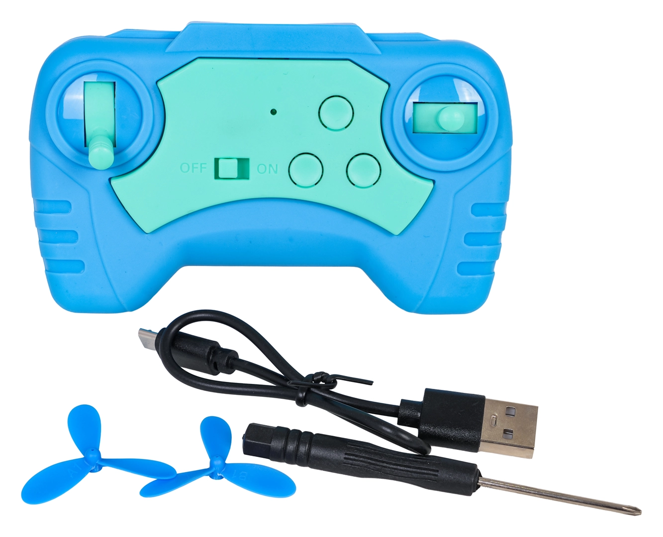 Zuverlässige Fernsteuerung mit präzisen Sticks und ohne Störungen. Im Lieferumfang sind zudem ein Ladekabel, ein Schraubendreher und Ersatzpropeller enthalten.